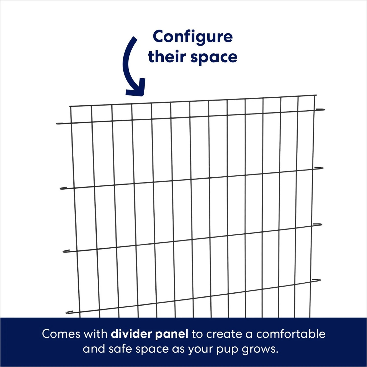 - Removable divider panel allows you to create a smaller space, so the crate’s size can be adjusted to accommodate your puppy as they grow, making it an essential accessory they’ll use throughout their life.