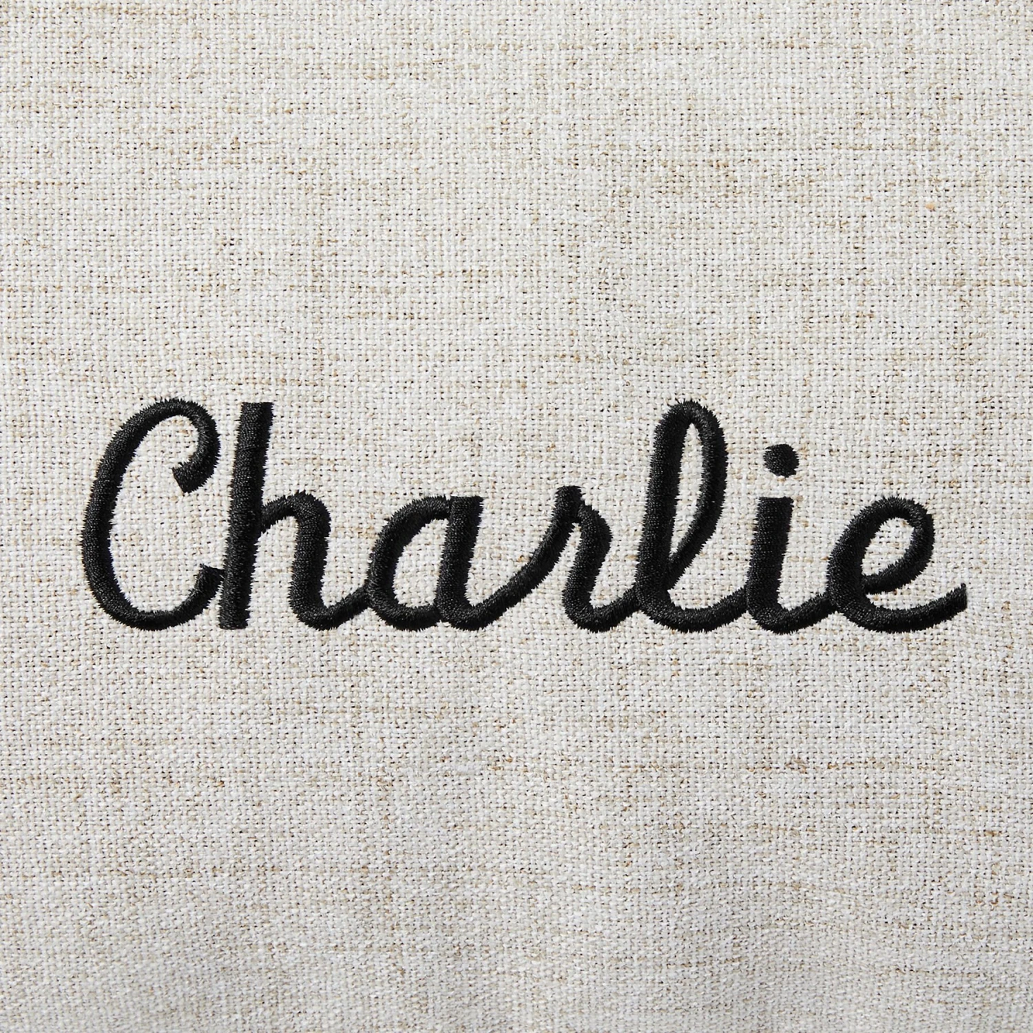 - Choose from black or navy blue thread for the embroidery, and flair script or block caps font.