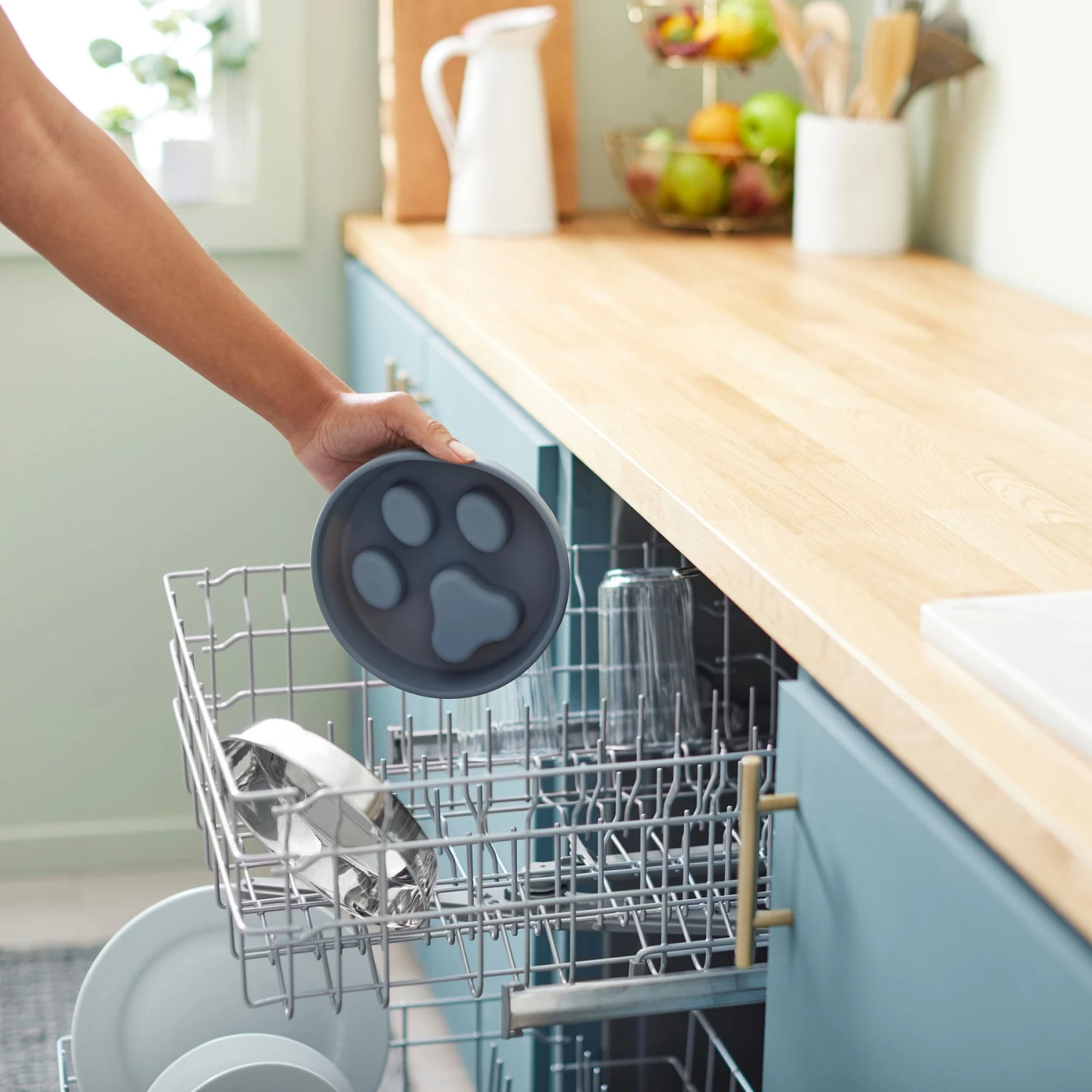 - The stainless-steel bowl can be tossed into the dishwasher for an easy clean, while the silicone insert can be washed by hand.