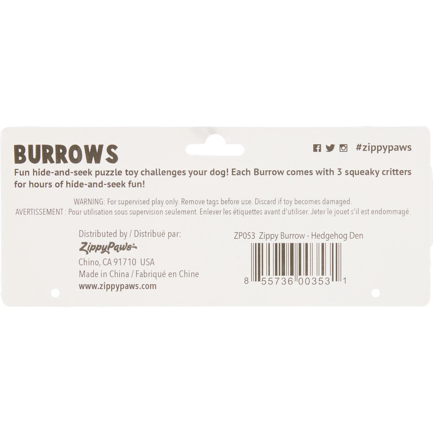 Frisco Trash Can & Raccoons Hide & Seek Puzzle Plush Squeaky Dog Toy & ZippyPaws Burrow Squeaky Hide & Seek Plush Dog Toy, Hedgehog Den